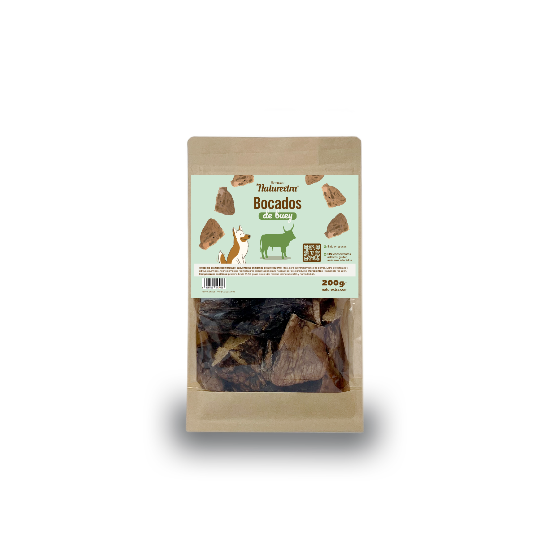 Este snack está elaborado en Alemania bajo estrictos estándares de calidad. Consiste en pequeños trozos de pulmón de res que han sido deshidratados suavemente mediante un proceso de cocción lenta en hornos de aire caliente. Este método garantiza que se elimine la humedad, concentrando el sabor y conservando la mayoría de los nutrientes de forma natural, sin necesidad de recurrir a conservantes químicos.