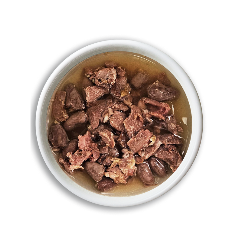 El Guiso de Pavo se puede servir como complemento a la dieta habitual (pienso seco) o como un delicioso capricho.