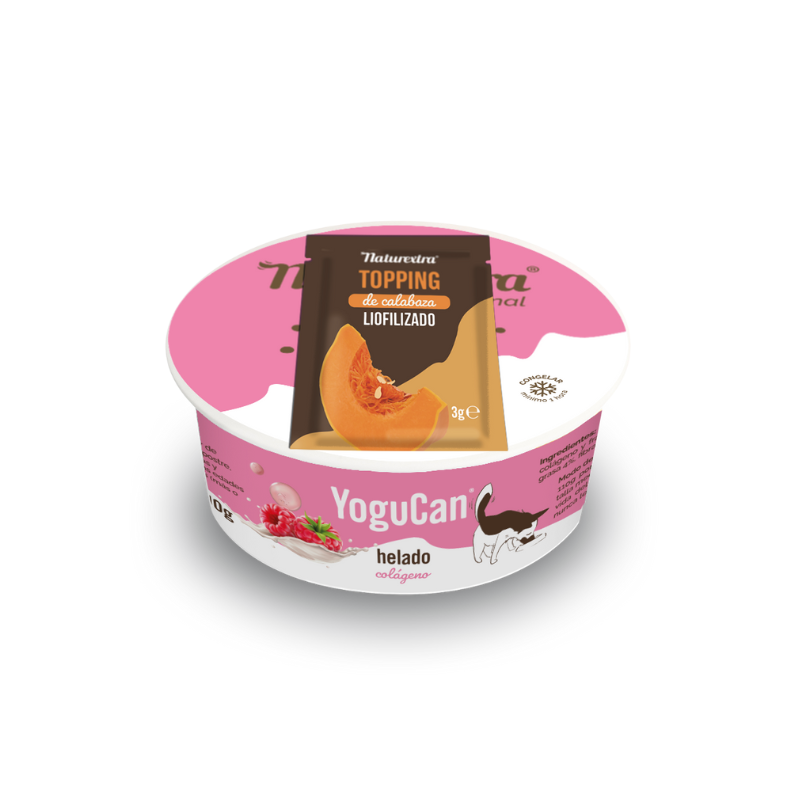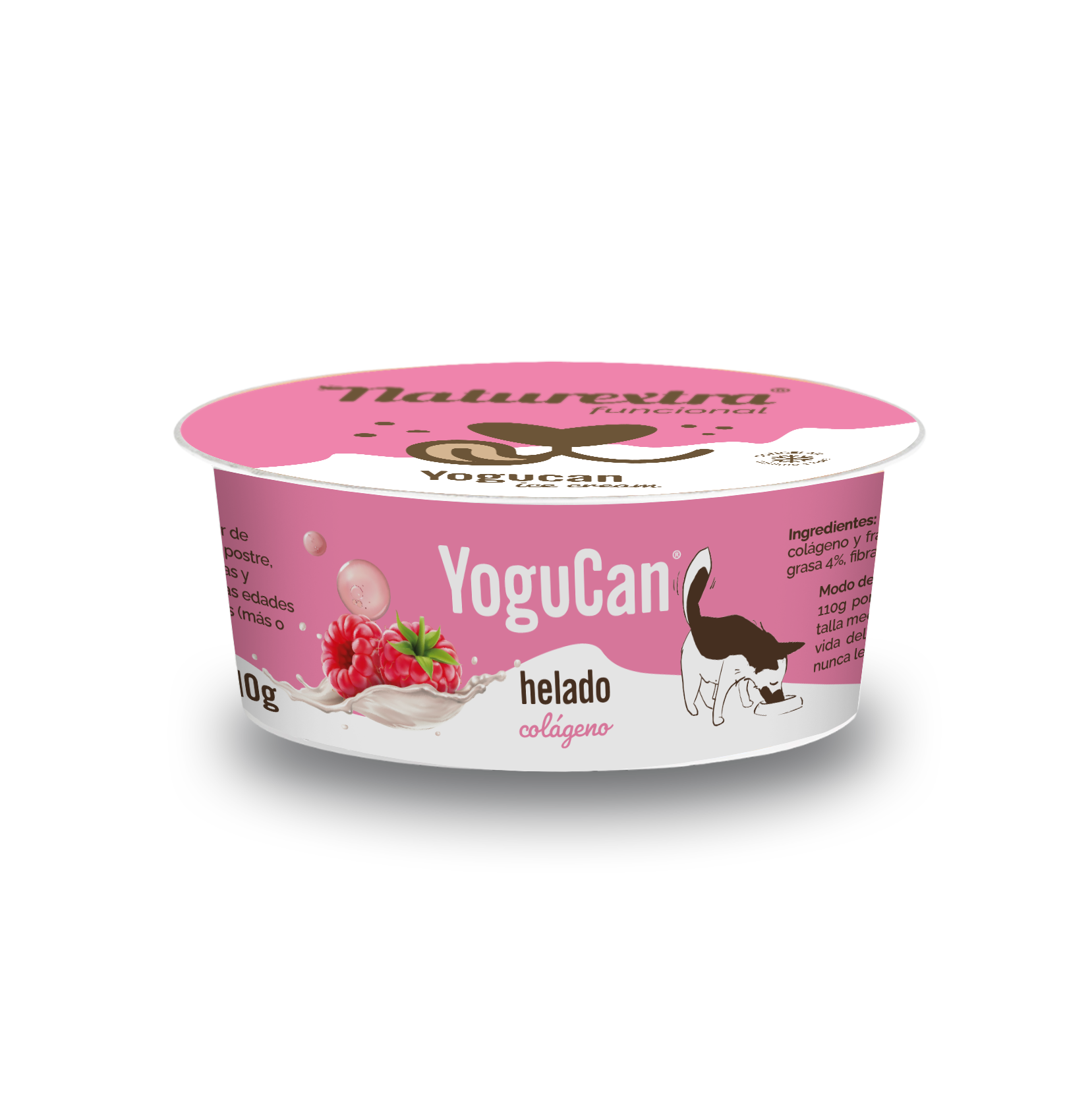 Presentamos el YoguCan HELADO con Colágeno y Frambuesa, la versión refrescante y funcional de yogur probiótico diseñada para el bienestar articular y dérmico de su perro y gato. Elaborado con leche y nata deslactosadas, es totalmente compatible con mascotas que presentan sensibilidad a la lactosa.