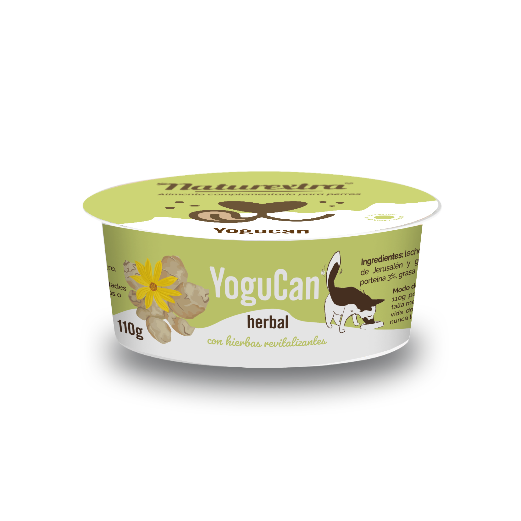 Descubra el YoguCan HERBAL con plantas terapéuticas, un yogur funcional diseñado para mejorar el estado general de salud y vitalidad de su perro y gato. Este delicioso yogur está hecho con leche y nata deslactosadas, siendo apto para mascotas con sensibilidad a la lactosa. El valor añadido de la fórmula reside en la inclusión de Artichoque de Jerusalén y Ginseng Siberiano.